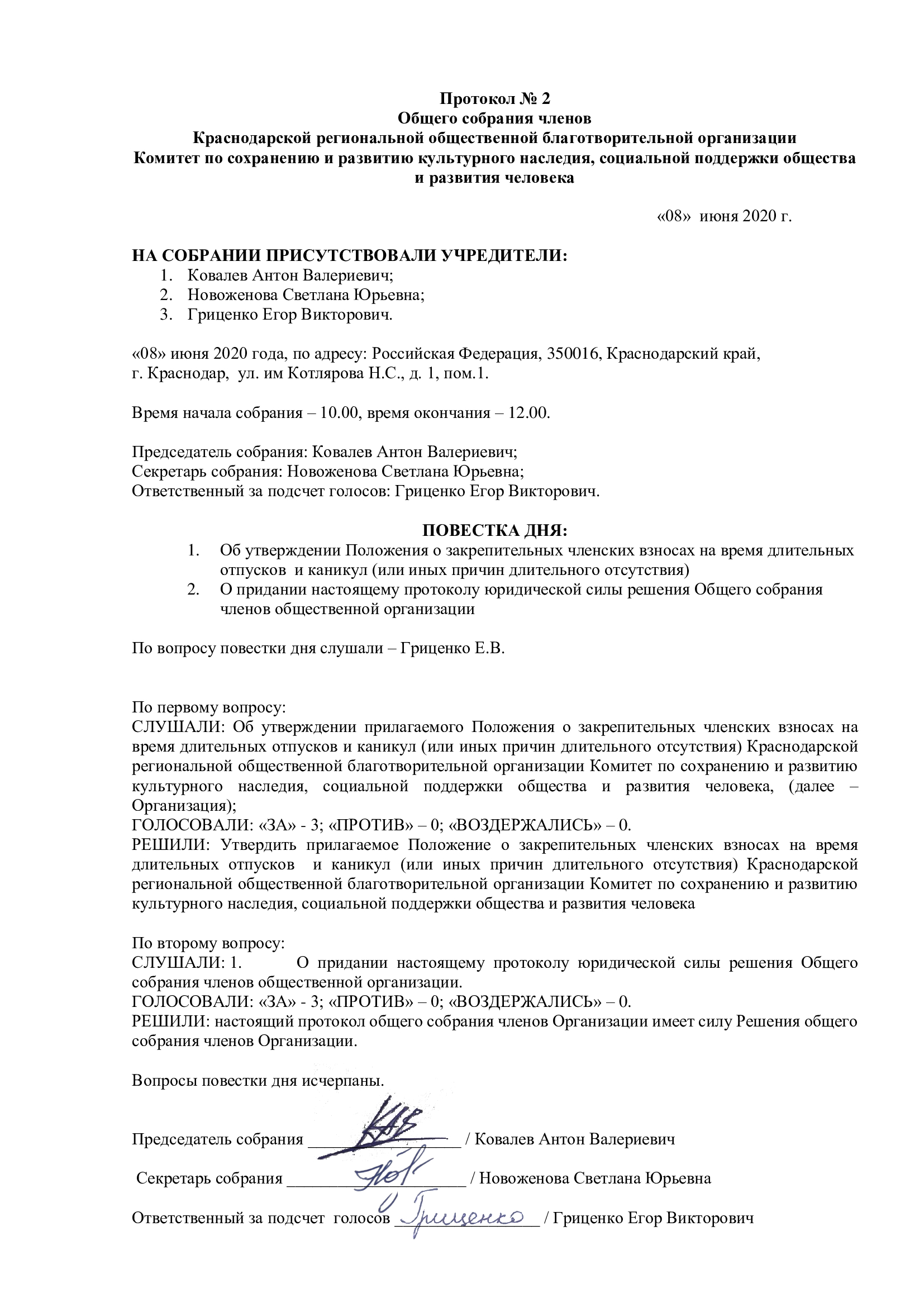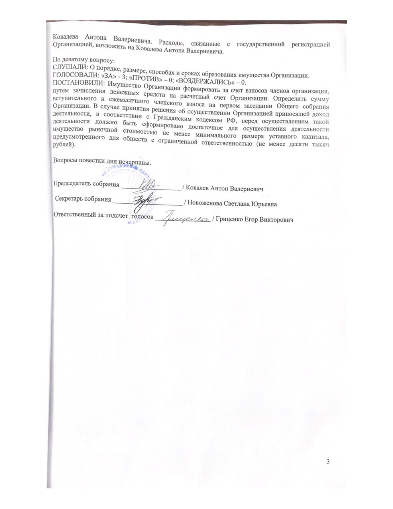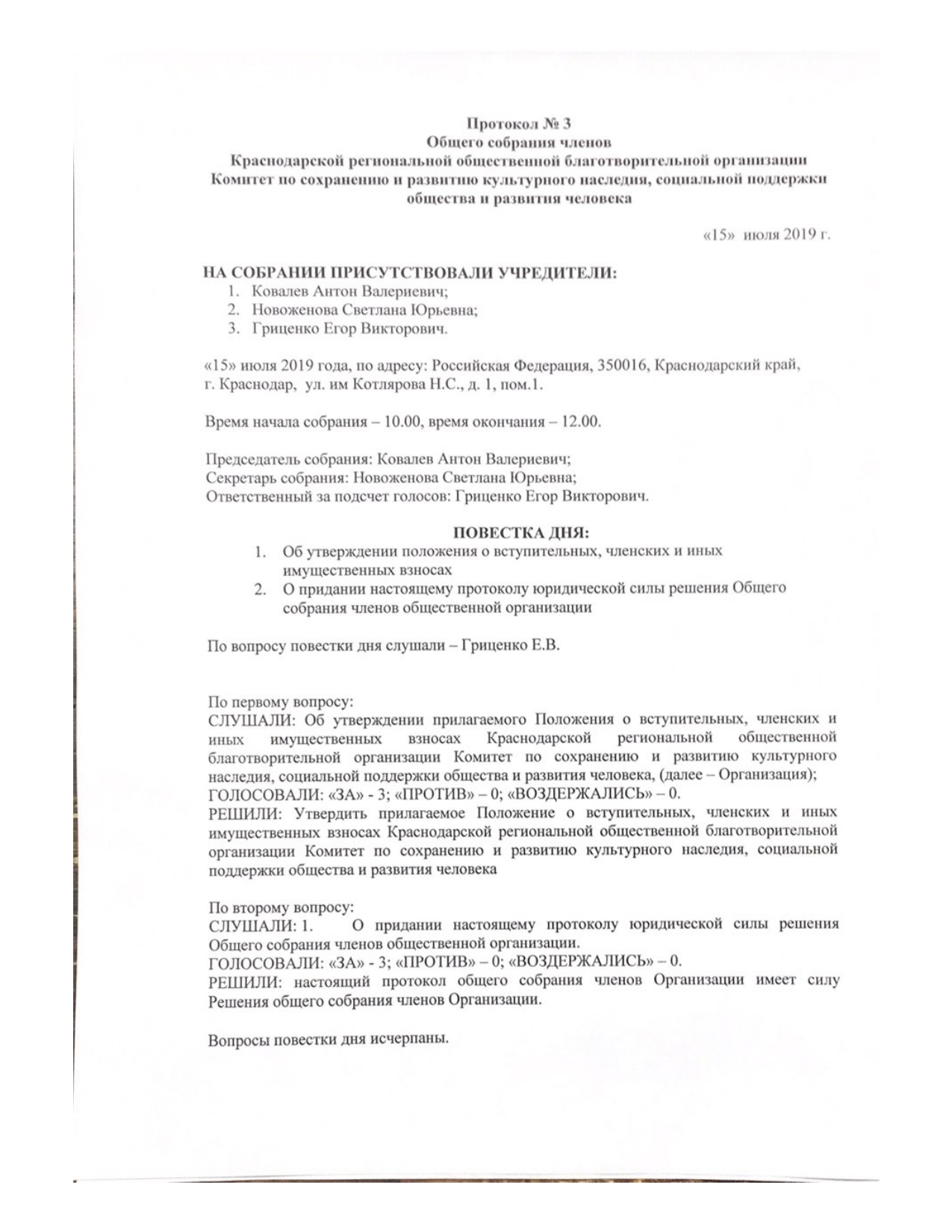Протокол 3 (об учреждении вступительных, членских и иных взносов)