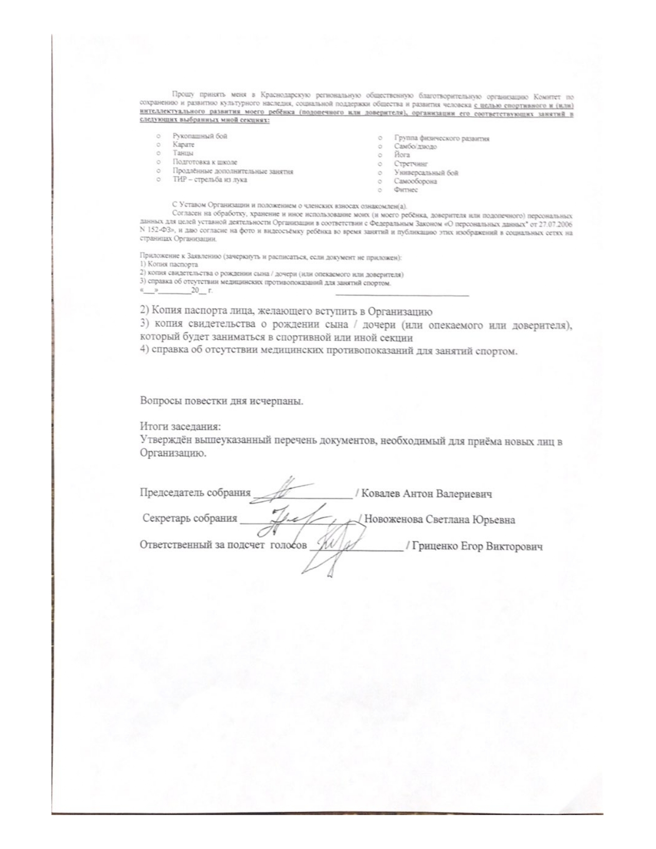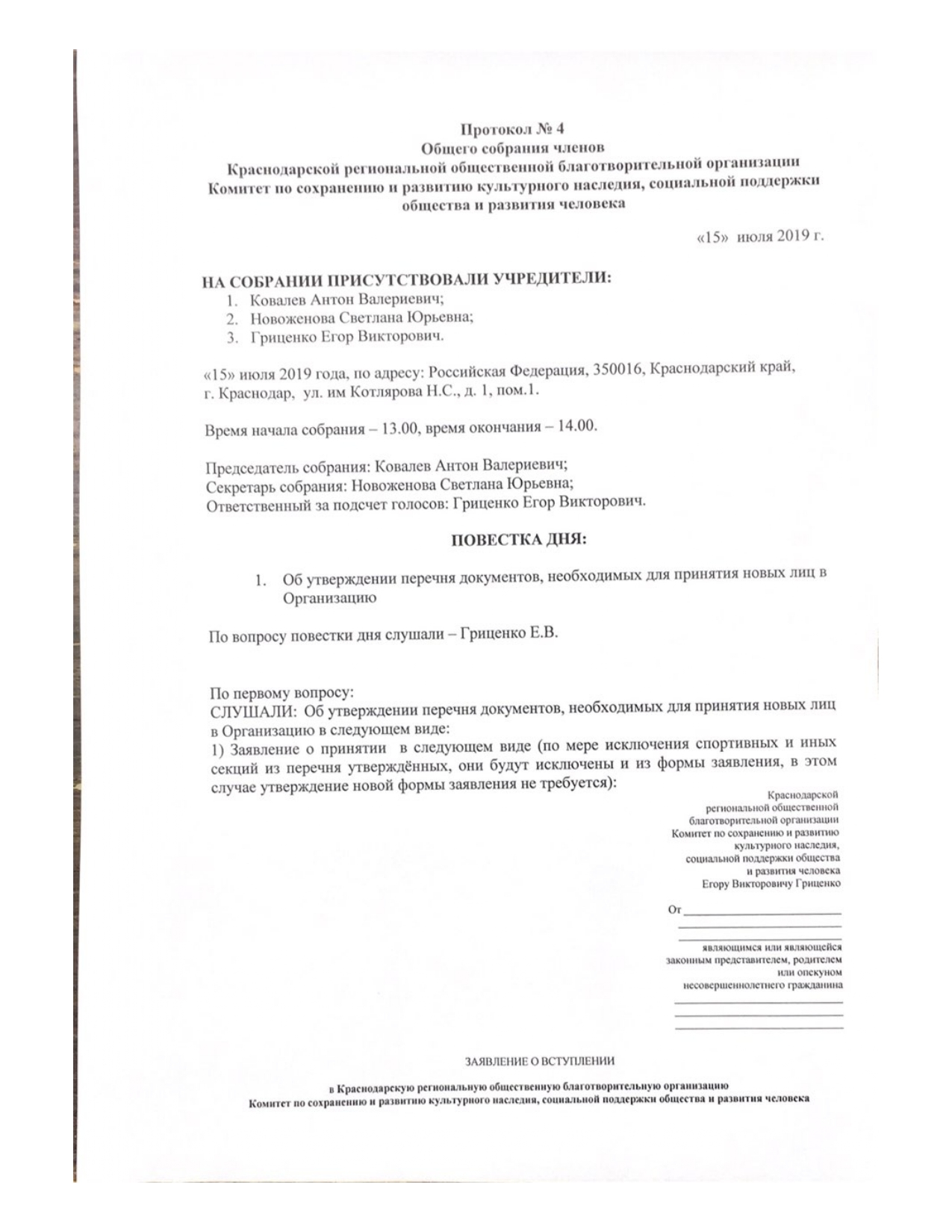 Протокол 4 (об утверждении перечня документов о вступлении в организацию)