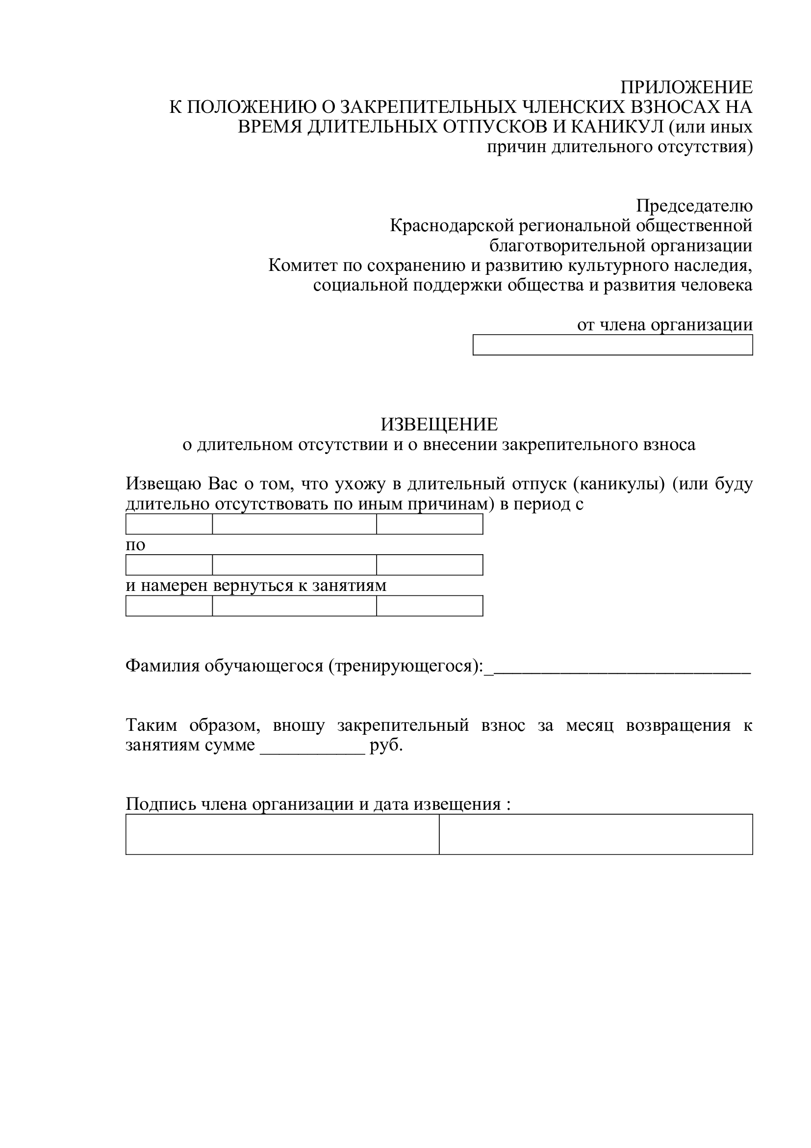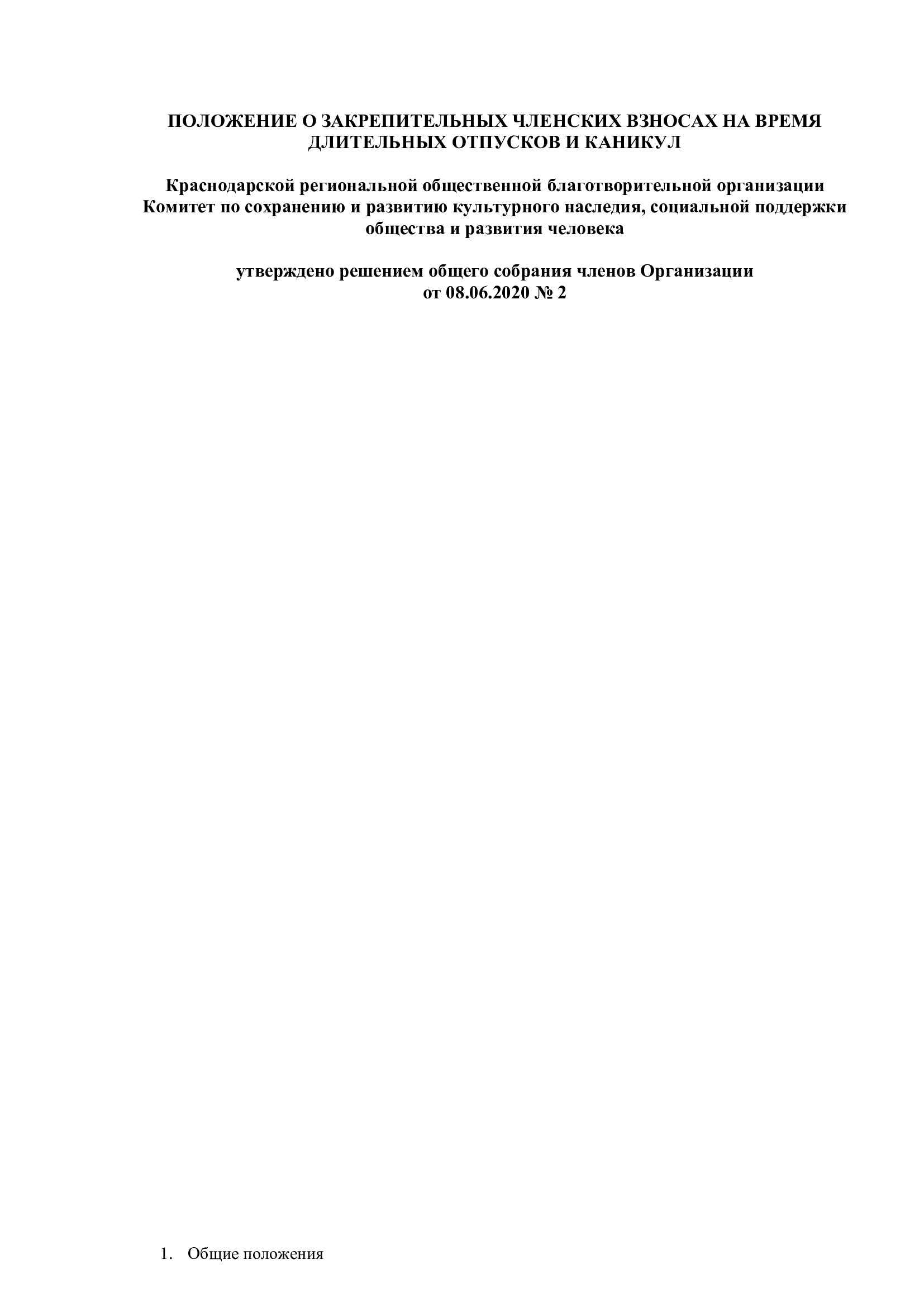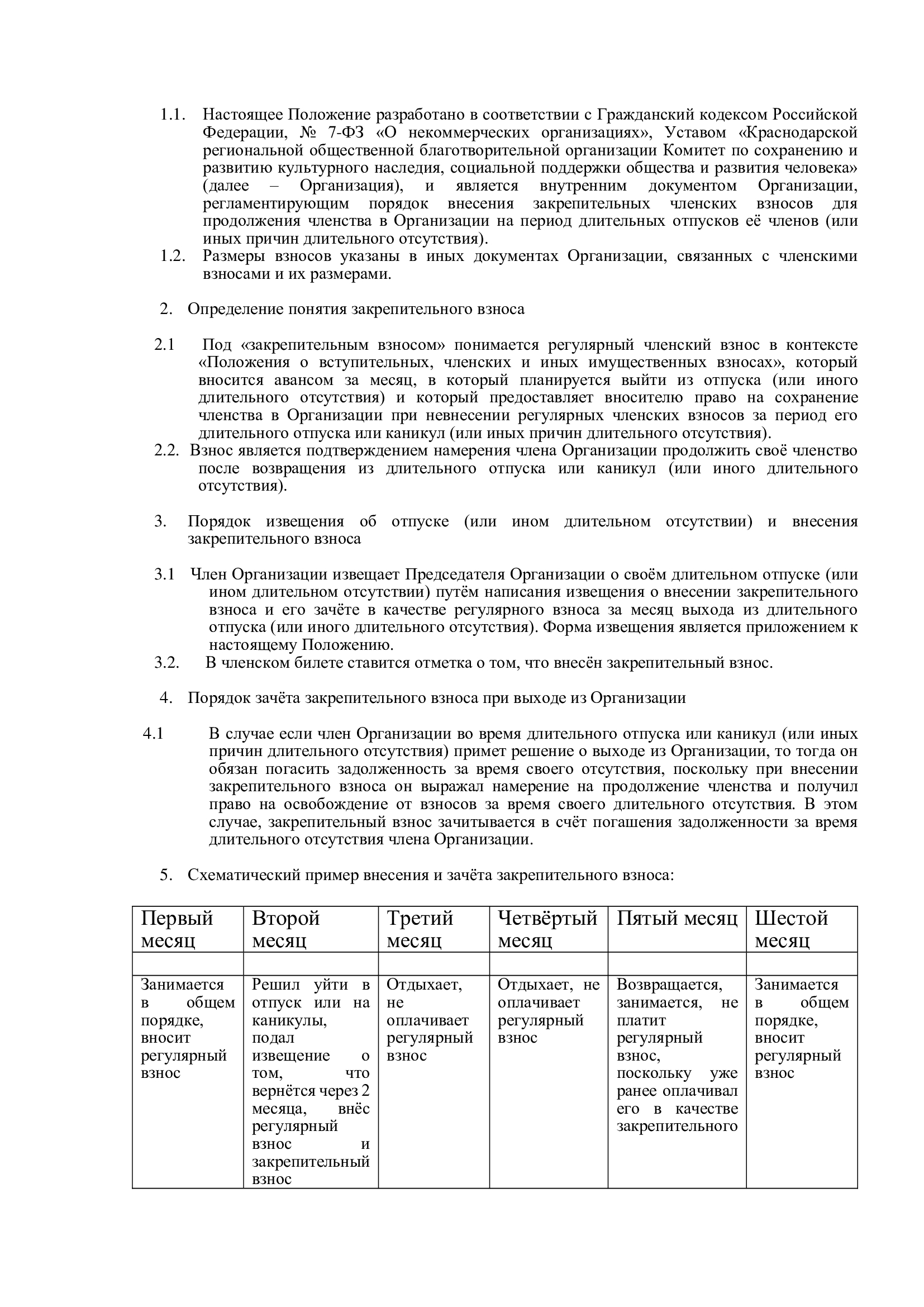 ПОЛОЖЕНИЕ О ЗАКРЕПИТЕЛЬНЫХ ВЗНОСАХ